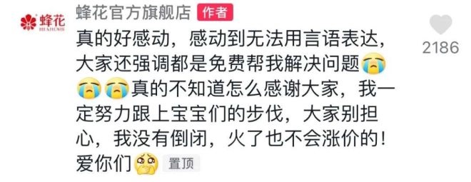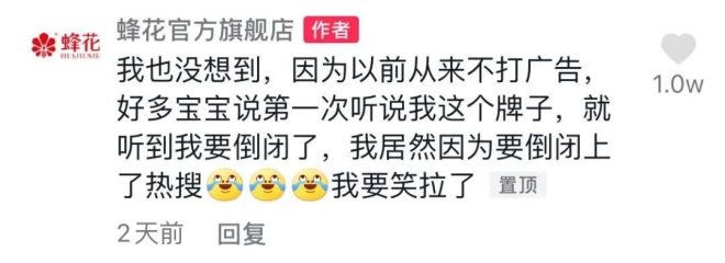 起因是有網(wǎng)友給官方留言求證,稱在超市看不到蜂花護(hù)發(fā)素的影子了,懷疑其倒閉了。結(jié)果引起一群熱心網(wǎng)友求回復(fù),表示這么良心的國貨品牌可千萬不要倒閉。