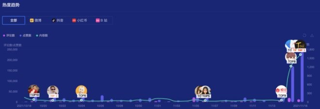 并且熱度趨勢超過了近一個(gè)月內(nèi)品牌其他聲音,跨越式的增長幅度高于品牌KOL的傳播效應(yīng),甚至達(dá)到了峰值。