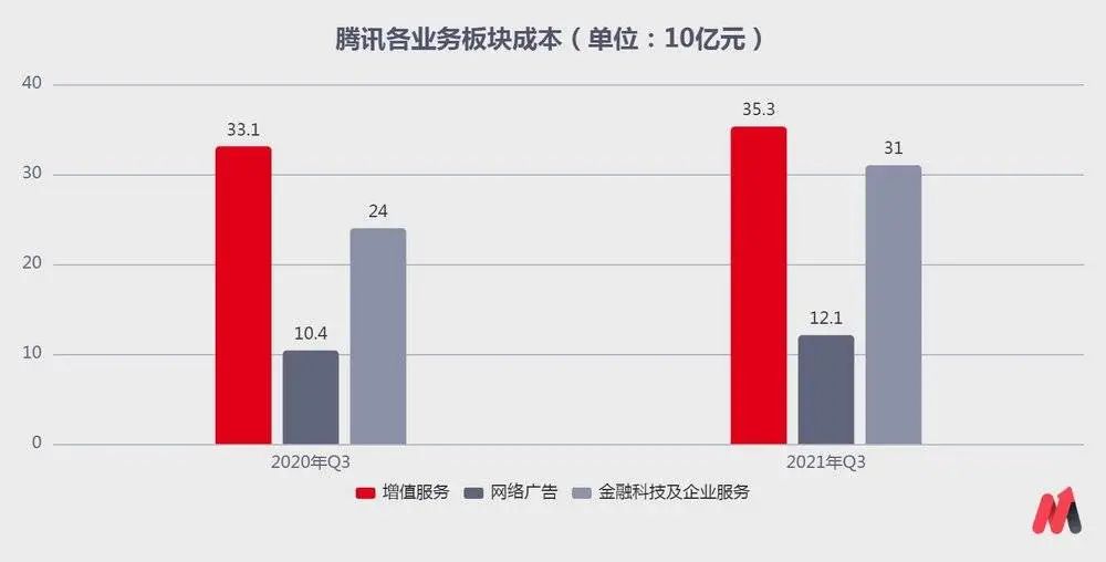 不過在騰訊三大主營業(yè)務(wù)中,金融科技和企業(yè)服務(wù)的成本占收入的71%,凈利率最低。可見,隨著金融和企服業(yè)務(wù)占比的增加,騰訊的整體利潤水平反而可能會下降。