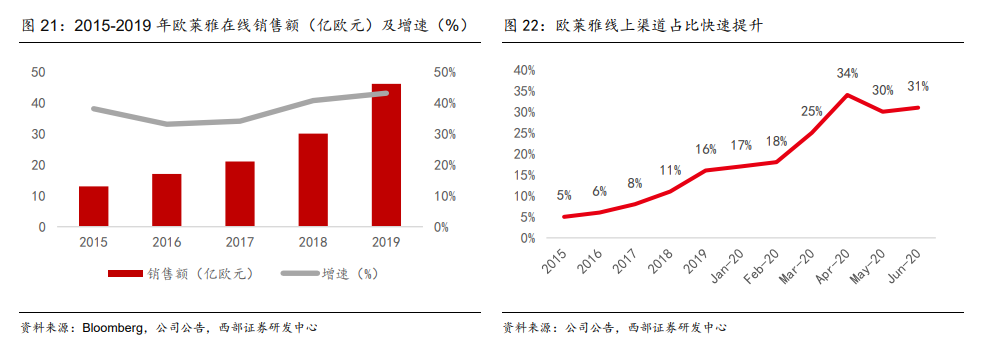 早在2010年,歐萊雅就開始數(shù)字化轉(zhuǎn)型,在中國,歐萊雅成為首個(gè)登陸天貓網(wǎng)站的化妝品集團(tuán),但前期增速始終算不上快,只是以個(gè)位數(shù)增長,直到2018年、2019年,線上渠道才開始爆發(fā)。