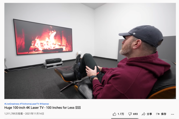 11月14日,YouTube上擁有1810萬(wàn)粉絲的海外知名科技博主UnboxTherapy發(fā)布了一條關(guān)于海信激光電視的使用體驗(yàn)視頻,稱海信L9系列激光電視帶來(lái)了”巨大的、身臨其境的視覺(jué)效果”。