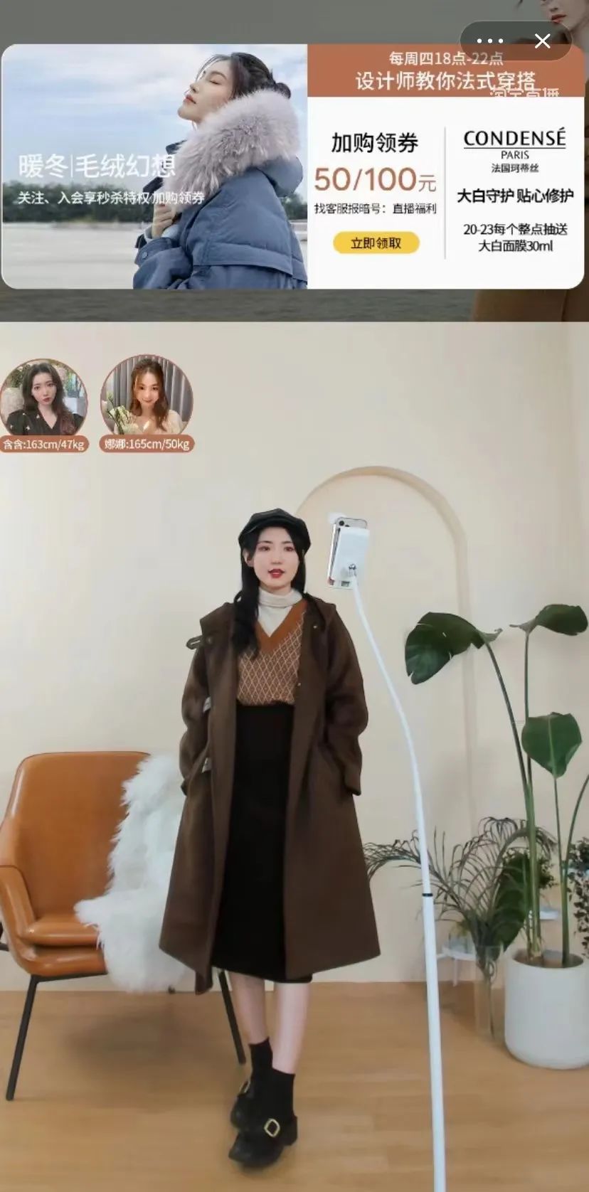 在第一波預(yù)售中,伊芙麗瞄準(zhǔn)泛奢華人群,發(fā)布了由代言人何穗演繹的輕奢系列,以居家治愈為主題,運(yùn)用高級(jí)感100%羊毛羊絨面料,打造舒適實(shí)用的治愈著裝;作為雙11的主力貨品,同時(shí)也是品牌優(yōu)勢(shì)品類,毛呢大衣、羽絨服等被安排在第一波現(xiàn)貨銷售中,以滿足主流時(shí)尚者和品牌大比例客群需求。