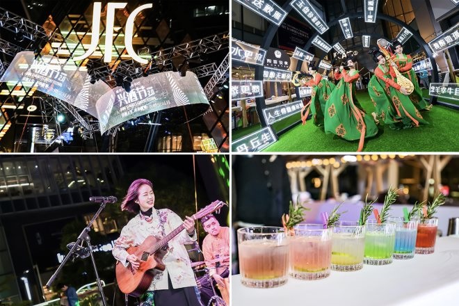 與此同時,廈門JFC品尚中心也在“造悅節(jié)”期間舉辦第二屆興酒節(jié),融合極具東方賽博朋克色彩的“酒”主題概念,推出鷺島首場大型沉浸式劇本殺、微醺市集、露營生活節(jié),持續(xù)加碼社交。