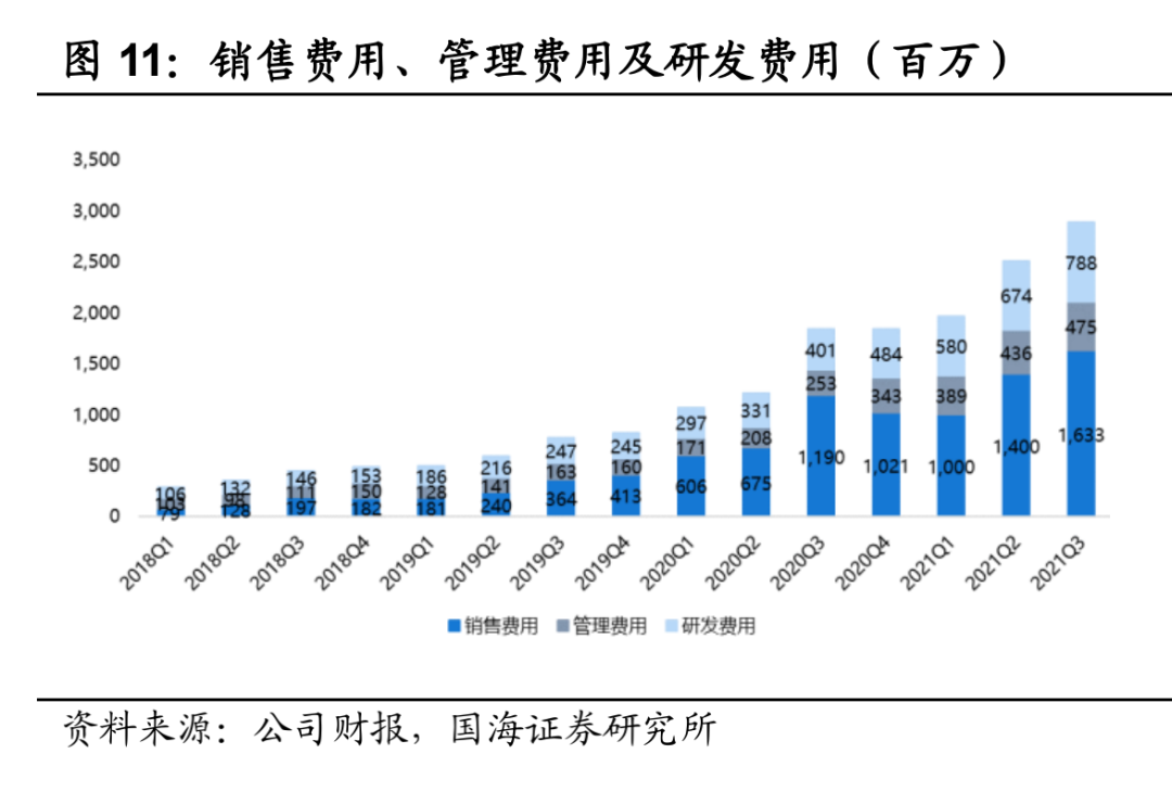 破圈開始后,B站銷售費用增速遠超管理費用和研發(fā)費用,圖:國海證券