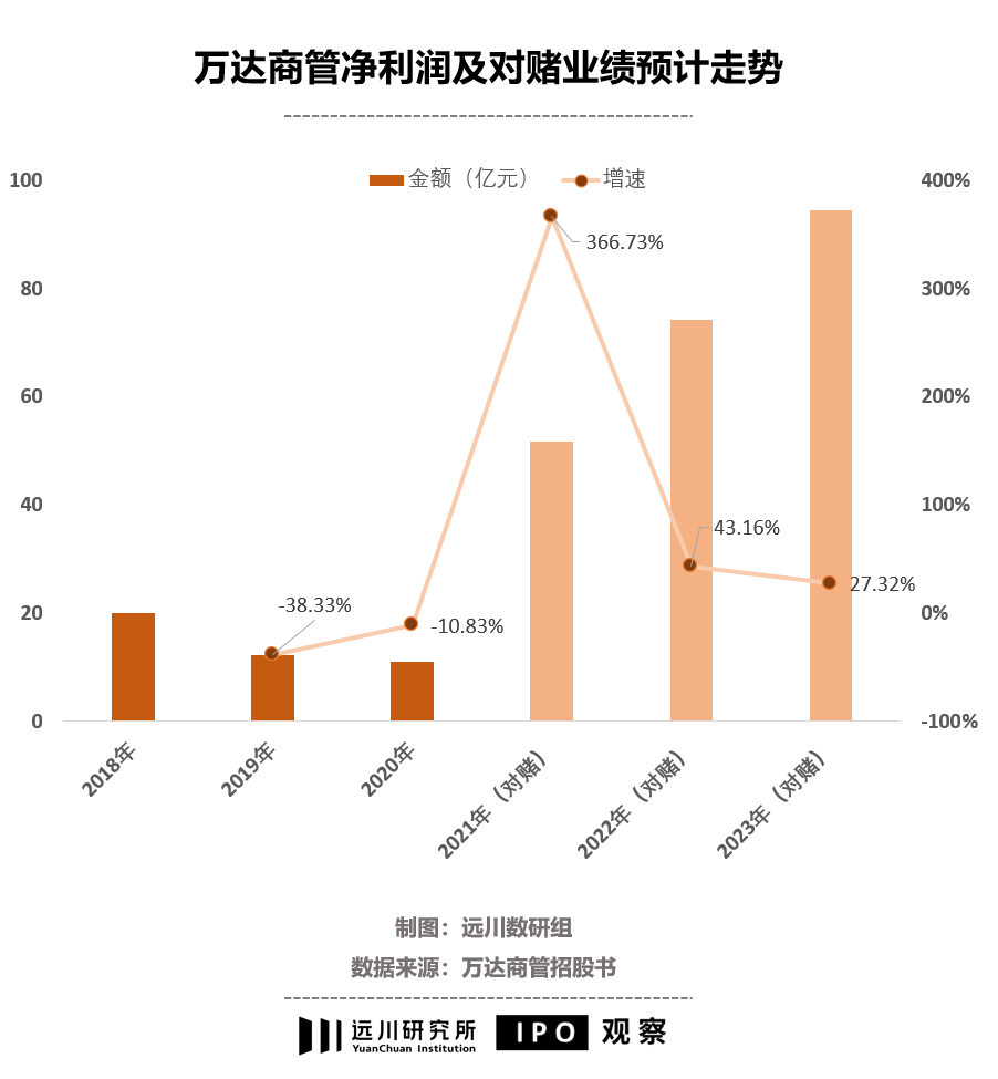 可能是因?yàn)橹挥羞@種估值才能滿(mǎn)足投資人的需要,同時(shí)也是王健林最新“賭局”的底氣:招股說(shuō)明書(shū)顯示,萬(wàn)達(dá)商管保證2021凈利潤(rùn)不得低于人民幣51.9億元,2022/2023年實(shí)際凈利潤(rùn)分別不得低于74.3億元以及94.6億元。
