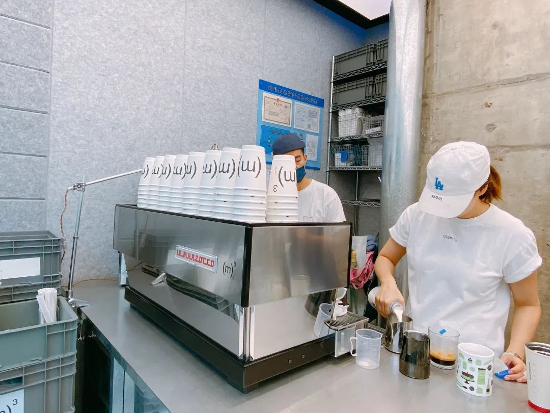 試營業(yè)第一天上午送出去的3個杯子,“10塊錢一杯的咖啡還送杯子”的消息,很快就在周邊中傳開了,下午店里就開始排隊。