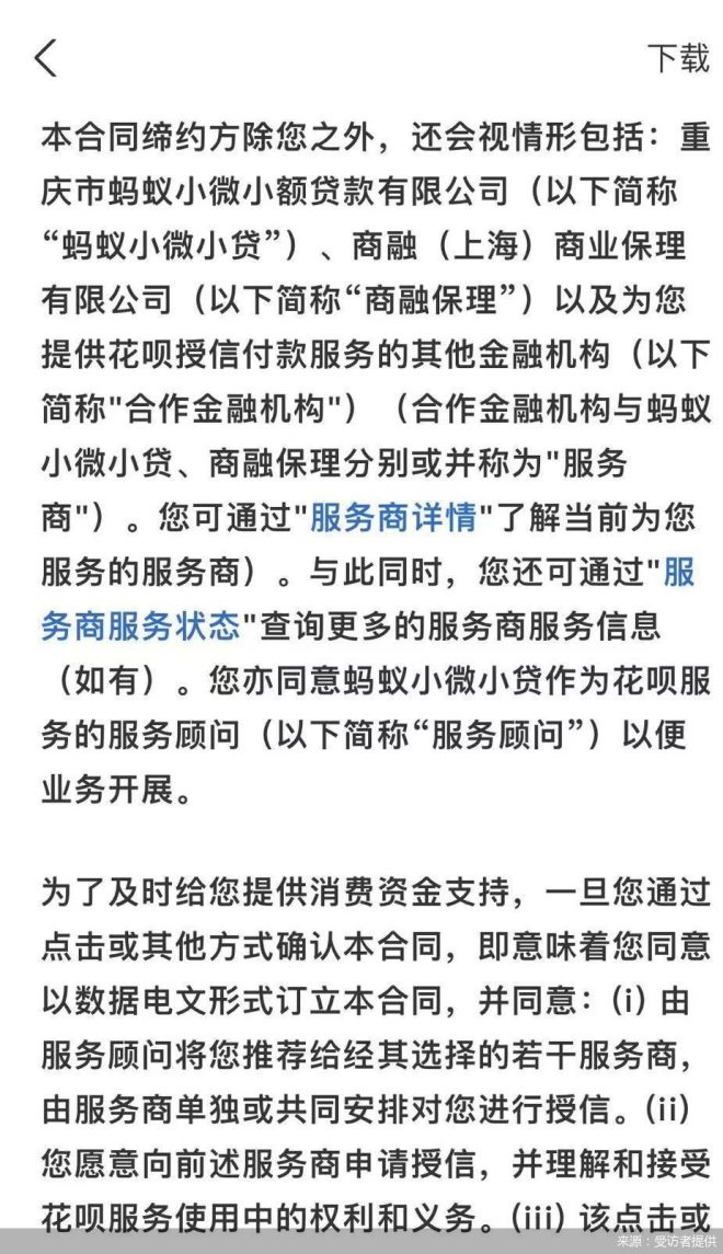 在蘇筱芮看來(lái),花唄對(duì)接多類服務(wù)機(jī)構(gòu),是大型互聯(lián)網(wǎng)平臺(tái)旗下信用支付產(chǎn)品對(duì)接眾多合作方的直接體現(xiàn),盡管對(duì)于機(jī)構(gòu)來(lái)說(shuō),能夠綜合各方資源取長(zhǎng)補(bǔ)短,但從金融消費(fèi)者角度,需要關(guān)注到協(xié)議中是否能夠清晰地標(biāo)注出具體由哪家機(jī)構(gòu)服務(wù),強(qiáng)化事前的知情權(quán),從而更好地進(jìn)行產(chǎn)品使用選擇。此前曾有部分大型平臺(tái)旗下產(chǎn)品對(duì)接多家機(jī)構(gòu)或者頻繁查詢金融消費(fèi)者征信,使金融消費(fèi)者面臨“征信花了”的風(fēng)險(xiǎn)。