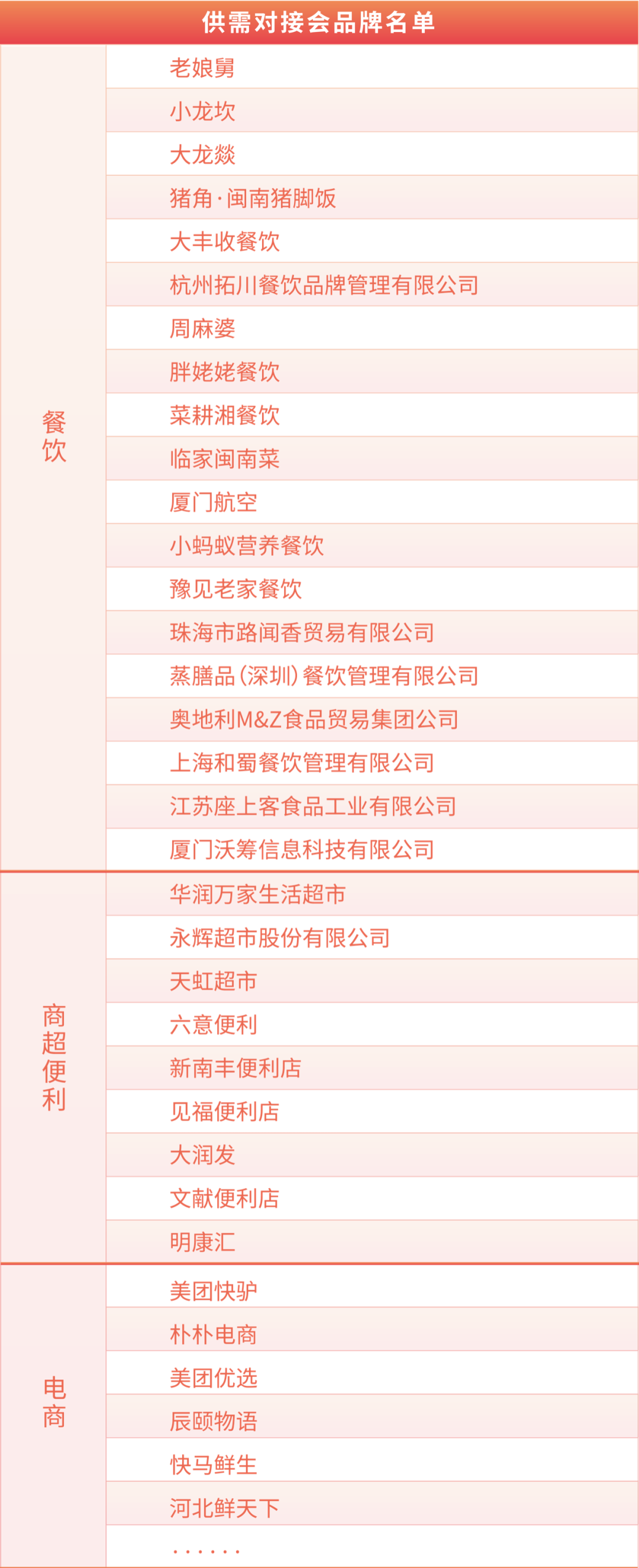 商協(xié)會協(xié)辦:江蘇省餐飲行業(yè)協(xié)會、浙江省飯店業(yè)協(xié)會、廣東省餐飲服務行業(yè)協(xié)會、廣東省團餐配送行業(yè)協(xié)會、福建省連鎖經營協(xié)會、福建省連鎖經營協(xié)會供應鏈分會、福建省旅游飯店業(yè)協(xié)會、福建省漁業(yè)行業(yè)協(xié)會、福建省水產加工流通協(xié)會、福建省冷凍食品協(xié)會、福建省批發(fā)零售行業(yè)協(xié)會、福建省蔬菜供應鏈協(xié)會、湖北省連鎖經營協(xié)會、安徽省連鎖經營協(xié)會、陜西省連鎖經營協(xié)會、大連市連鎖經營協(xié)會、福州市餐飲烹飪行業(yè)協(xié)會、重慶市烹飪協(xié)會、重慶市火鍋協(xié)會、東莞市連鎖餐飲發(fā)展促進會、長沙市餐協(xié)、珠海市餐飲協(xié)會、蘇州市烹飪協(xié)會、廣州食品行業(yè)協(xié)會、邢臺市烹飪飯店協(xié)會、菏澤市食品安全促進會、金華市商業(yè)聯(lián)合會、福州市老字號協(xié)會、廈門餐飲茶飲同業(yè)公會、廈門餐飲走出去聯(lián)盟、福清市餐飲烹飪行業(yè)協(xié)會、泉州市餐飲行業(yè)協(xié)會、泉州市湘菜協(xié)會、晉江市餐飲烹飪行業(yè)協(xié)會、石獅市餐飲烹飪行業(yè)協(xié)會、莆田市餐飲烹飪行業(yè)協(xié)會、長泰餐飲烹飪協(xié)會、南平市烹飪行業(yè)協(xié)會、三明市食品行業(yè)協(xié)會、永安市商業(yè)行業(yè)協(xié)會