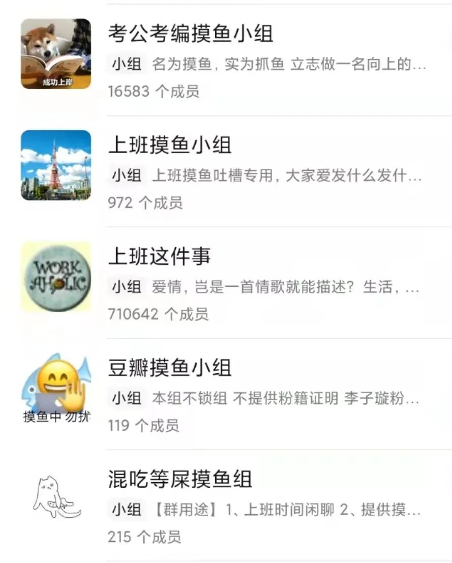 在某MCN工作的丹妮在和KOL對接時,會同時和豆瓣小組的“摸魚小隊”聊天。這群志同道合的“魚仔”,聊天方式是一篇“騰訊在線文檔”。按照“話題”與“回復(fù)”索引,小隊成員可根據(jù)偏好進行回復(fù)。單休還是雙休、外賣是米粉還是包子、新人真的難帶......瑣碎的吐槽與探討,讓這一簡單的在線文檔愉悅了丹妮的身心,也讓這些來自不同職業(yè)的“打工人”短時間內(nèi)組成了一個“摸魚共同體”。