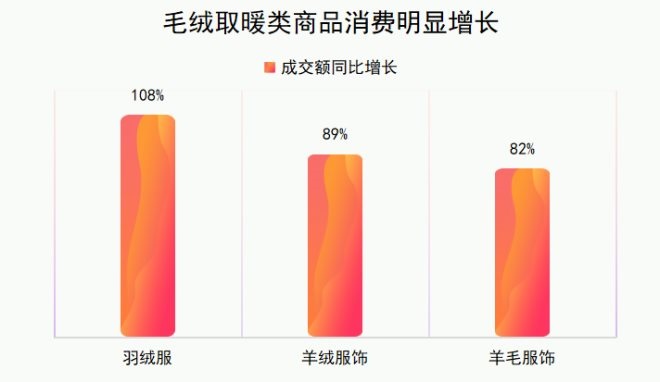 秋冬季節(jié)“穿得暖和”也很重要。11月1日以來,羽絨服成交額同比增長(zhǎng)108%,羊絨、羊毛類服飾成交額同比增長(zhǎng)超過80%。
