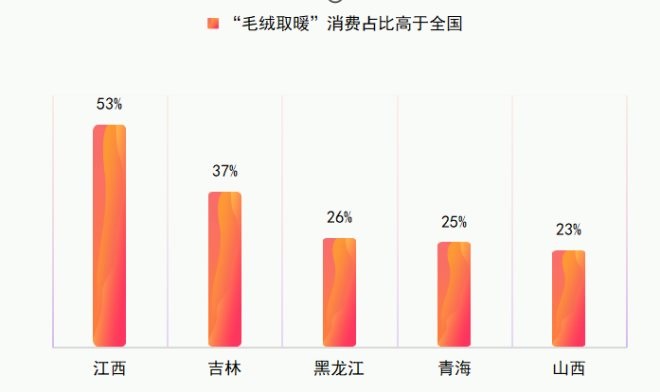 從地區(qū)差異來看,海南、廣東、四川等南部省份“吃肉取暖”消費(fèi)高;江西、東北三省、青海、西藏地區(qū)“毛絨取暖”消費(fèi)高于全國(guó);西南地區(qū)貴州、西藏、重慶電器取暖消費(fèi)高,重慶、浙江、安徽、云南等地更偏好“精準(zhǔn)取暖”。