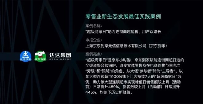 京東到家目前已合作連鎖百強(qiáng)商超82家,“超級商家日”全渠道營銷活動(dòng)幫助連鎖商超實(shí)現(xiàn)銷售額同比增長200%。