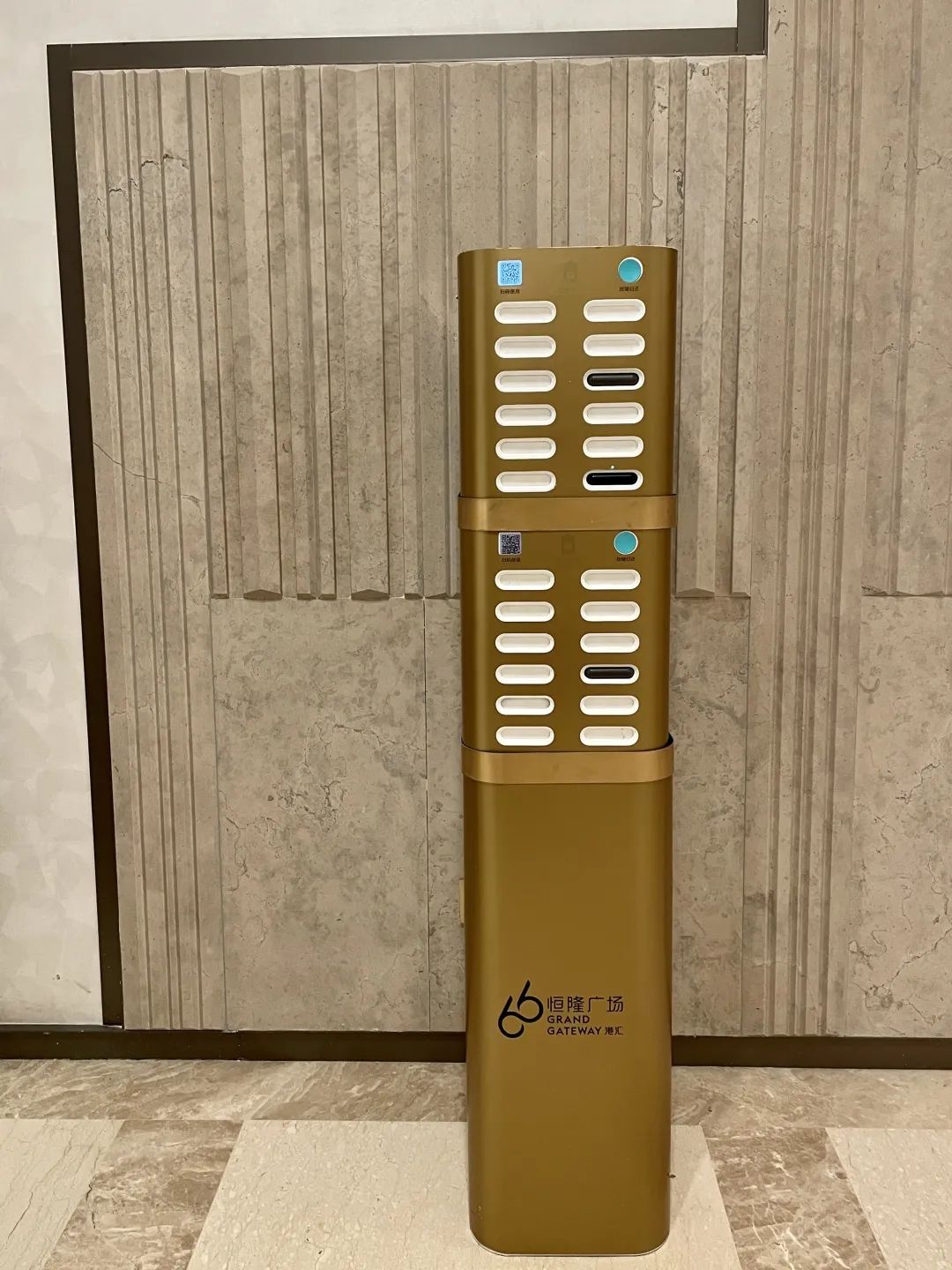 如港匯恒隆廣場(chǎng)內(nèi)的移動(dòng)共享充電寶,都改成了商場(chǎng)的主題古銅金色,使得它和其他設(shè)施一起,整體看上去更加和諧。