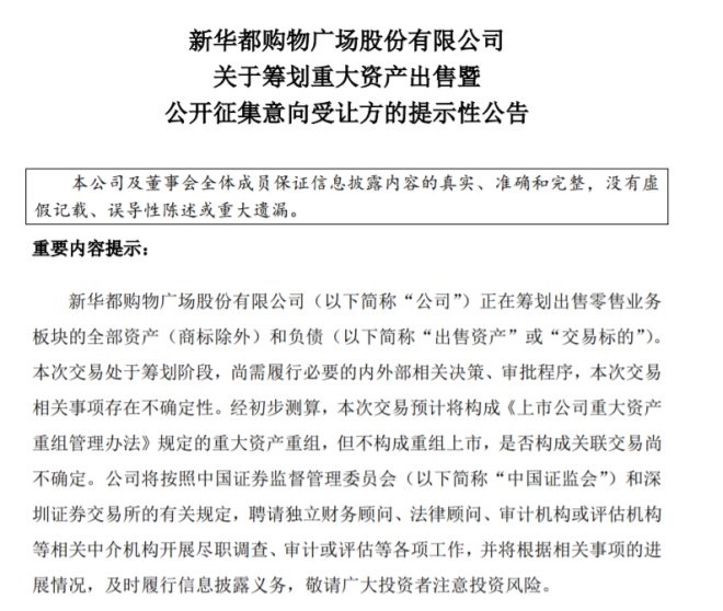 新華都擬出售零售業(yè)務(wù)板塊全部資產(chǎn)