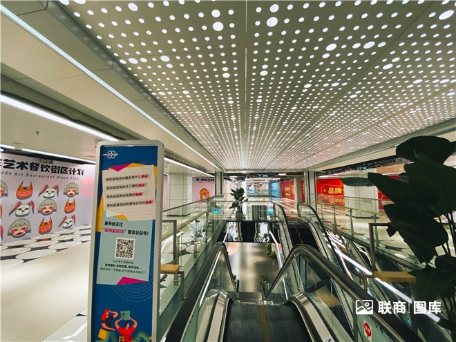 電梯:商場并無直梯設(shè)計,在南北兩向分別各有一部扶梯,與改造后新增的下沉式廣場串聯(lián)了整個商場。