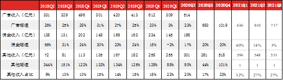 因此,京東收入除了來源于自營商品收入,還來源于服務(wù)收入。服務(wù)收入主要是指京東向第三方商家收取的傭金、廣告費(fèi),以及物流收入和新業(yè)務(wù),具體包括平臺及廣告服務(wù)收入和物流及其他服務(wù)收入。