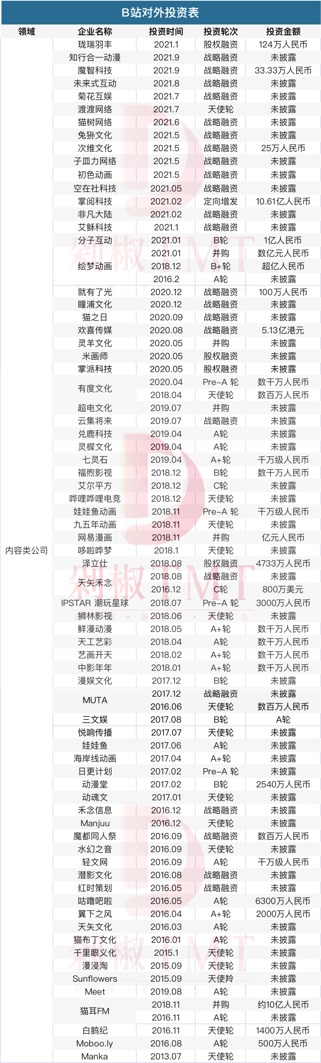 除了騰訊以外,很少有公司像B站一樣熱衷于投資。