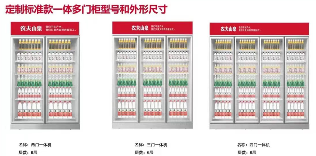 今年的農(nóng)夫山泉,在這個(gè)淡季也沒停下來(lái),先是復(fù)活了“打奶茶”這款消失了7年的品牌,并推出熱飲柜。其后的一次會(huì)議上,鐘老板更是祭出大殺器:斥資20億,全力在終端推進(jìn)4門(也有3門)冰柜——這是要給現(xiàn)在的終端升升級(jí)。