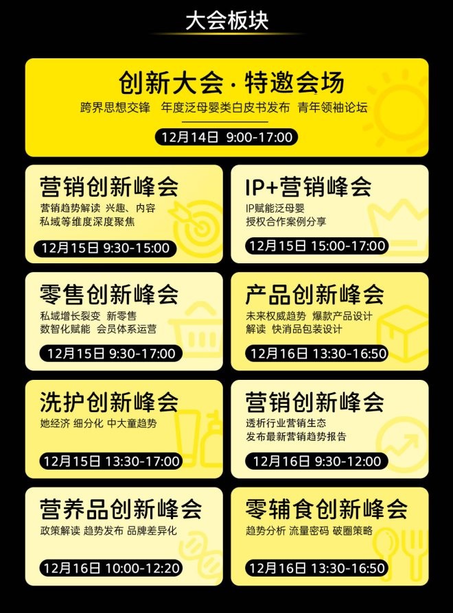12月15-16日,泛母嬰生態(tài)創(chuàng)新大會(huì)圍繞營(yíng)銷(xiāo)/洗護(hù)/零售/IP/營(yíng)養(yǎng)品/零輔食/產(chǎn)品創(chuàng)新七大主題相繼召開(kāi)主題峰會(huì),