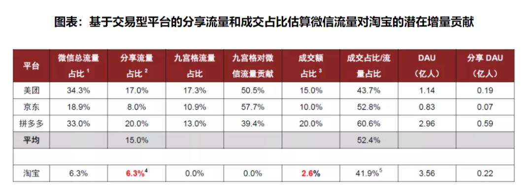 在中金的結(jié)論中提到,對阿里和字節(jié),微信流量的開放帶來了流量上的增量,但總體也許不如之前市場預(yù)期的可觀,進(jìn)一步轉(zhuǎn)化為交易量或用戶時(shí)長時(shí),可能存在更大的損耗?紤]到阿里和字節(jié)可能更為積極的舉措,以及微信開放更多使用場景的可能性,未來流量和成交貢獻(xiàn)也許存在進(jìn)一步提升空間。