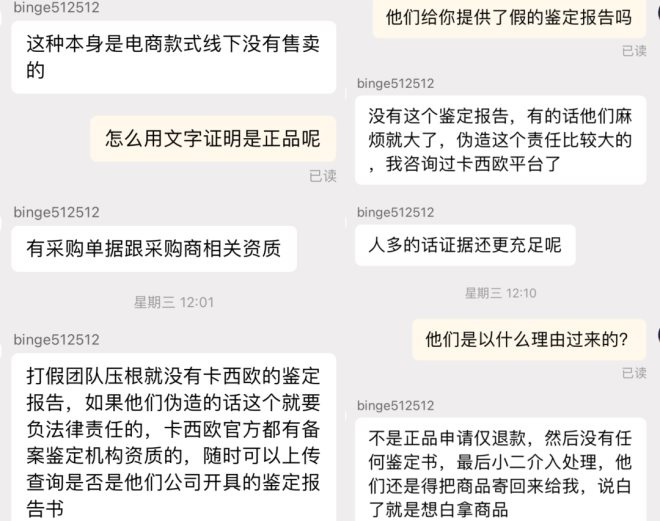 資深“老鳥”在群里狂刷收徒信息,還有人以偽造鑒定書為生,不論是正規(guī)商品,還是假貨、違規(guī)商品,他們豪言都能“成功下車”。