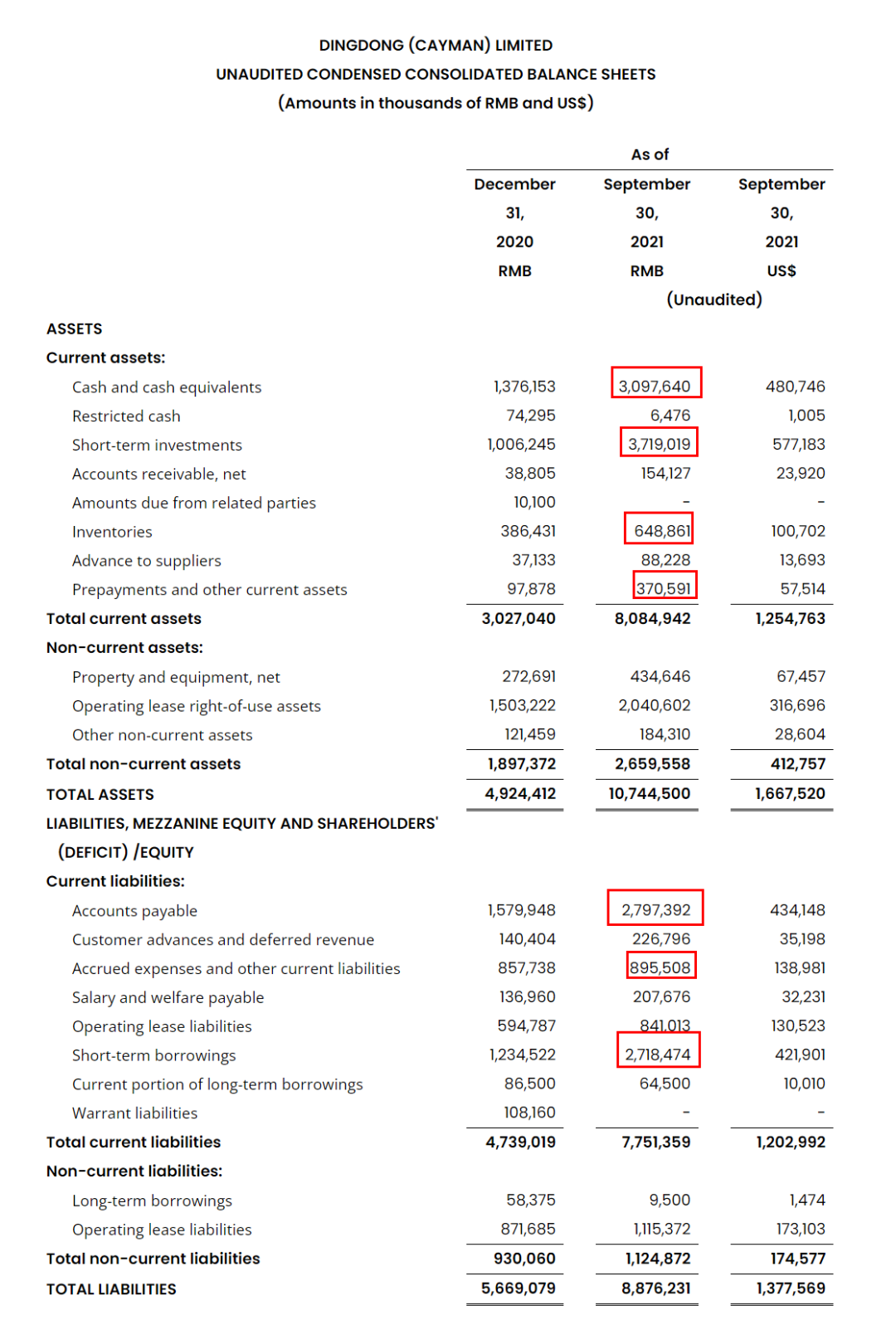 財(cái)報(bào)數(shù)據(jù)顯示,叮咚買菜的流動(dòng)資產(chǎn)有80.85億元,而流動(dòng)負(fù)債有77.51億元。看起來(lái)還有富裕,沒(méi)什么問(wèn)題。但是流動(dòng)資產(chǎn)部分,只有現(xiàn)金和現(xiàn)金等價(jià)物是30.98億元,還有短期投資是37.19億元,差不多68億元左右的這兩個(gè)部分是隨時(shí)可以變現(xiàn)的,而其他的那些流動(dòng)資產(chǎn)變現(xiàn)能力并不強(qiáng)。