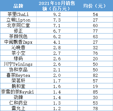 天貓10月份袋泡茶品牌銷售額排名,36氪根據(jù)久謙中臺(tái)提供數(shù)據(jù)制表