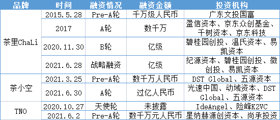 6月28日,茶里宣布獲得數(shù)億元戰(zhàn)略融資,CGV紀(jì)源資本、易凱資本、碧桂園創(chuàng)投位列投資名單。而僅在今年6月,這一賽道就發(fā)生三筆融資。除茶里外,茶小空與TNO茶飲先后獲得A輪融資與Pre—A輪融資。此外,飽受爭(zhēng)議的小罐茶,也在去年孵化了袋泡茶品牌“茶小壺”,蜜雪冰城也正通過上市的契機(jī)推出袋泡茶產(chǎn)品。