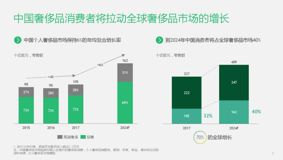 另一份來自波士頓咨詢和騰訊聯(lián)合發(fā)布的《中國(guó)奢侈品市場(chǎng)消費(fèi)者數(shù)字行為報(bào)告》,同樣佐證了中國(guó)奢侈品市場(chǎng)的廣闊。報(bào)告顯示:在全球奢侈品市場(chǎng)中,中國(guó)消費(fèi)者比例已從2017年的32%增至2024年的40%,未來將帶動(dòng)全球奢侈品市場(chǎng)75%的增長(zhǎng)。