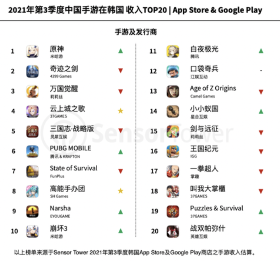 在今年三季度中國手游在韓國收入排行中,《高能手辦團(tuán)》位列第8位,超過了米哈游的老牌二次元游戲《崩壞3》,可以說是非常亮眼的成績。在一系列通稿以及投資中,我們也可以看到B站對游戲這一重要商業(yè)化渠道的看法轉(zhuǎn)變。