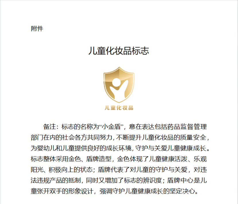 就在發(fā)布關(guān)于兒童彩妝產(chǎn)品定性問(wèn)題的前2天(12月1日),國(guó)家藥監(jiān)局剛剛正式公布兒童化妝品的專(zhuān)屬標(biāo)志“小金盾”。按照規(guī)定,該標(biāo)志應(yīng)當(dāng)?shù)缺壤龢?biāo)注在銷(xiāo)售包裝容易被觀察到的展示面的左上方,清晰易識(shí)別。明年5月1日起申請(qǐng)注冊(cè)或者進(jìn)行備案的兒童化妝品,都需要使用此標(biāo)志。