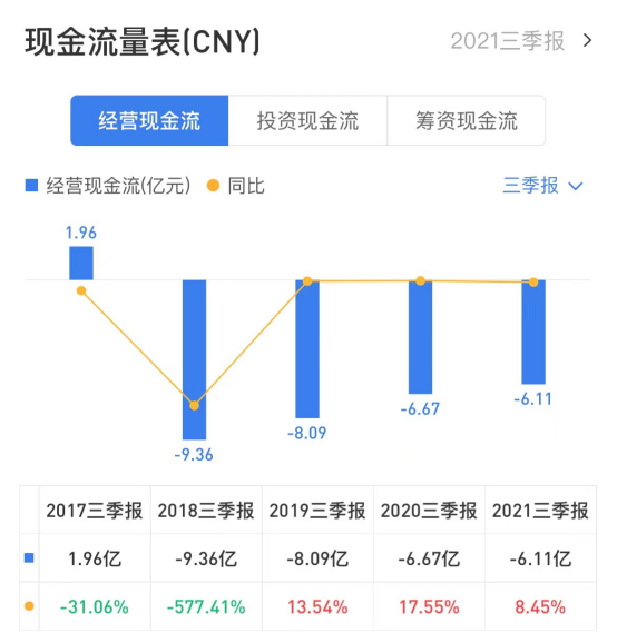 事實(shí)上,由于應(yīng)收賬款過高的影響,金螳螂的現(xiàn)金流明受到影響明顯。今年前三季度,金螳螂經(jīng)營現(xiàn)金流為-6.11億元,這已是連續(xù)四年經(jīng)營現(xiàn)金流同比為負(fù);營業(yè)收入為198.00億元,同比下降10.28%;凈利潤為14.07億元,同比下降17.87%。