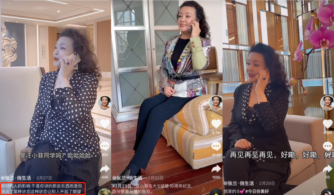 第三個系列是流量頗高的“個人生活”系列,張?zhí)m在視頻里經(jīng)常提到孫子、孫女以及兒子汪小菲和兒媳大S。比如,她經(jīng)!敖o汪小菲和大S打電話”,而且會在視頻結(jié)尾,以長輩的姿態(tài)傳授一些“人生哲學(xué)”:在祝福兩人結(jié)婚十周年時,稱“大S真有意思,你倆躺在床上給媽秀恩愛”,并對汪小菲說,“媽只是陪你半輩子的人,媳婦才是陪你一輩子的人”。