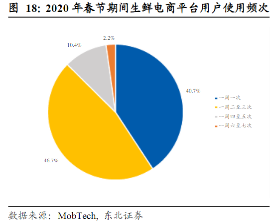 另一個快為即時配送:盒馬鮮生,3公里內30分鐘送達,滿足消費者及時食用的時間要求。