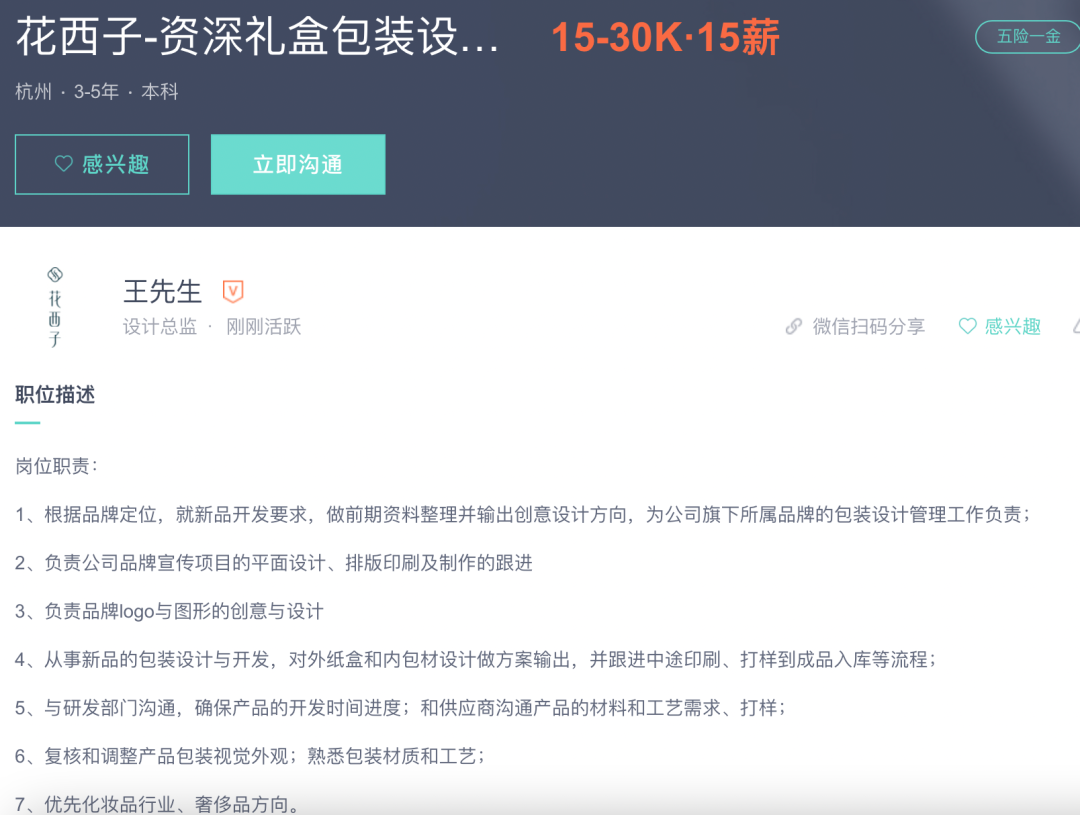 對(duì)設(shè)計(jì)的重視也意味著更加專業(yè)的內(nèi)部設(shè)計(jì)團(tuán)隊(duì)而非僅依賴外部的創(chuàng)意機(jī)構(gòu)。根據(jù)花西子所屬宜格集團(tuán)的公開(kāi)招聘信息,從業(yè)3-5年的資深禮盒包裝設(shè)計(jì)師年薪在22.5萬(wàn)-45萬(wàn)之間,這個(gè)薪酬和同行拉開(kāi)了相當(dāng)一大截,至少體現(xiàn)了品牌對(duì)設(shè)計(jì)人才的儲(chǔ)備和重視。