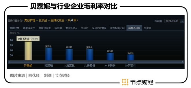 相比普通化妝品,薇諾娜這種皮膚學級護膚品具有更高的科技含量,相應的附加值較高,產(chǎn)品的毛利率也相當客觀。今年公司三季報顯示,貝泰妮銷售毛利率達到76.9%,遠高于珀萊雅、上海家化、丸美等綜合類化妝品廠商。