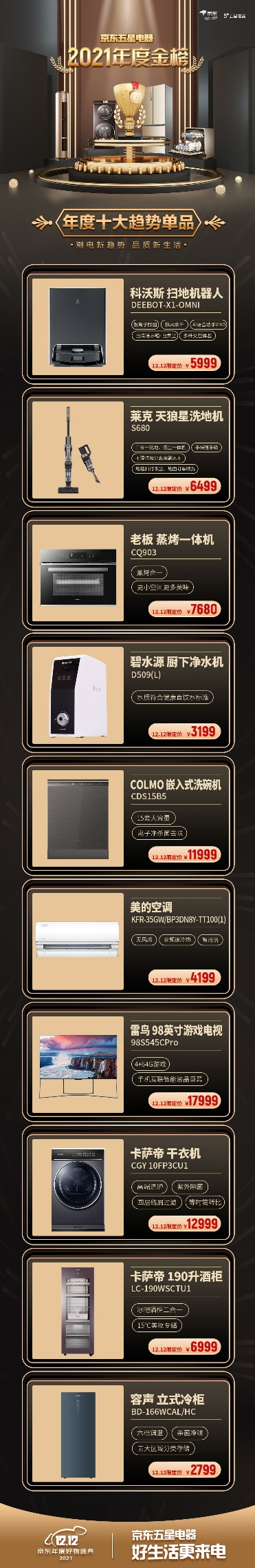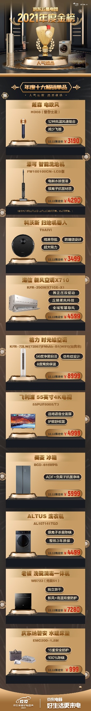 “種草”之下,諸多網(wǎng)紅爆款、熱門新款家電讓人目不暇接,如何選,怎么選也成為一道難題。從綜合銷量、價格、好評率等維度參考,京東五星電器梳理出家電“2021年度金榜”,以新趨勢潮電為消費者帶來品質(zhì)新生活,有購買計劃的消費者可以輕松“抄作業(yè)”。