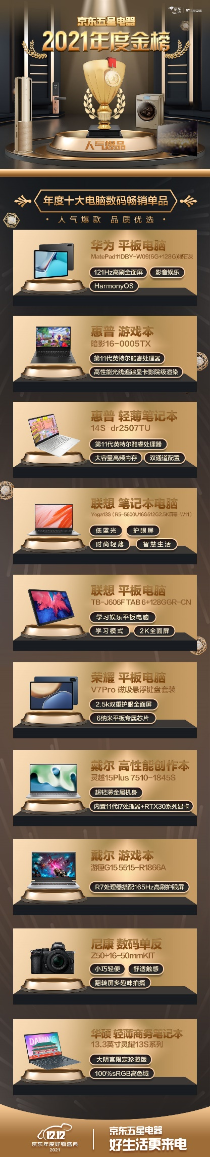 電腦數(shù)碼暢銷榜中,消費者鐘愛的高端筆記本越來越多,如121Hz高刷全面屏華為平板電腦、第11代英特爾酷睿處理器惠普游戲本暗影系列、低藍光時尚輕薄聯(lián)想筆記本電腦、2.5k雙重護眼全面屏榮耀平板V7Pro 磁吸懸浮鍵盤套裝、超輕薄金屬機身戴爾高性能創(chuàng)作本、大明宮限定珍藏版13.3英寸華碩輕薄靈耀13S系列……隨時隨地辦公、玩游戲不卡頓,深受工作白領、學生黨的歡迎。