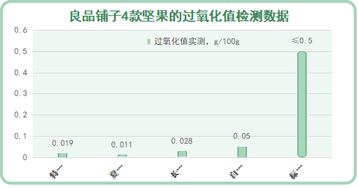 本次90+測評結(jié)果顯示:4款良品鋪子的堅果,新鮮度表現(xiàn)較好,過氧化值、酸價遠(yuǎn)低于國標(biāo)標(biāo)準(zhǔn)限值。