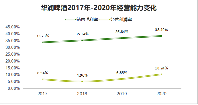 據(jù)統(tǒng)計,自2017年底啤酒市場第一輪高端化提價以來,公司實現(xiàn)連續(xù)三年銷售毛利率提升,2021年上半年華潤銷售利潤率達到了42.3%,相較于2017年同比上升達到了25.6%。高端化對于實現(xiàn)品牌利潤訴求起到了立竿見影的效果。