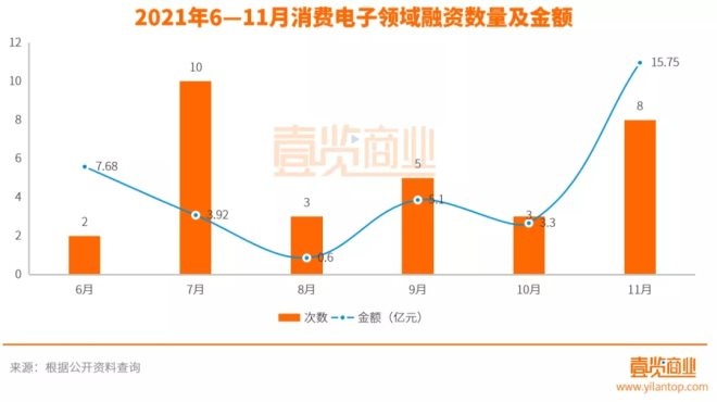 無論從融資數(shù)量還是融資金額,消費(fèi)電子都是11月份增長最快的領(lǐng)域。11月消費(fèi)電子領(lǐng)域共發(fā)生8起融資事件,數(shù)量僅次于7月份的10起,融資金額為15.75億元,為消費(fèi)電子領(lǐng)域全年最高的融資。