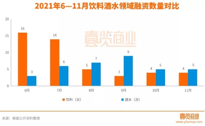自從經(jīng)過了6月和7月的高峰時刻之后,飲料領(lǐng)域的融資在8月開始便出現(xiàn)了斷層式下滑,從7月的14次下滑至5次,此后便維持在4次左右。