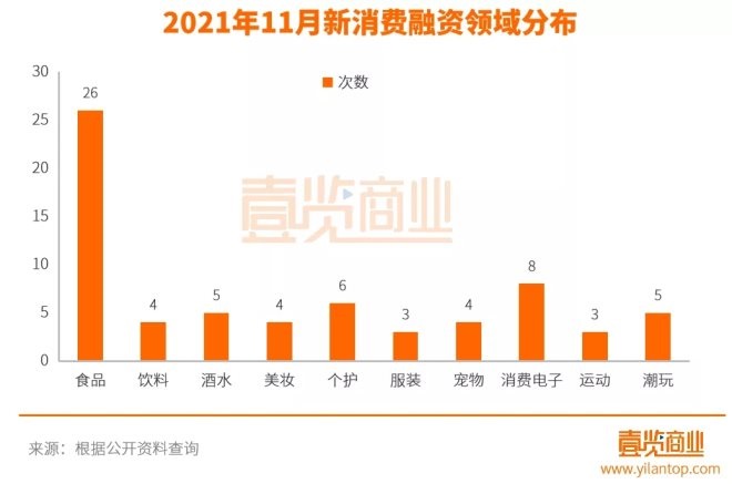 值得注意的是,億元級融資主要集中在食品領(lǐng)域,占12起,其次消費(fèi)電子3起,美妝1起。