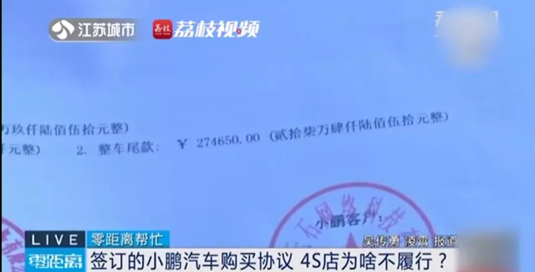 12月6日,據(jù)江蘇廣電集團旗下荔枝新聞報道,南京陳先生于今年10月初看中一輛小鵬P7,隨后繳納了5000元定金,10月23日與銷售人員談好價格達成購買意愿,雙方簽訂了購車協(xié)議。
