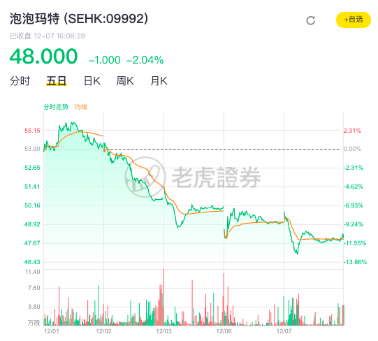 截至7日收盤,泡泡瑪特跌2.04%,報48港元/股,市值672.93億港元,較市值最高點1500億港元已跌去800多億港元。