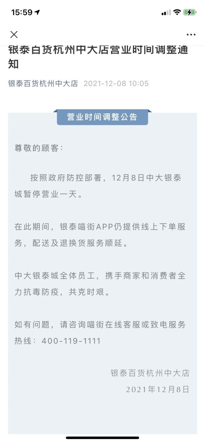 杭州確診病例涉及多家商場,中大銀泰暫時(shí)歇業(yè)