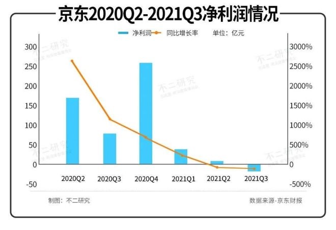 從凈利潤角度看,京東出現(xiàn)增收不增利的癥結(jié)。繼今年Q2京東凈利潤增速轉(zhuǎn)負后,Q3京東由盈轉(zhuǎn)虧。