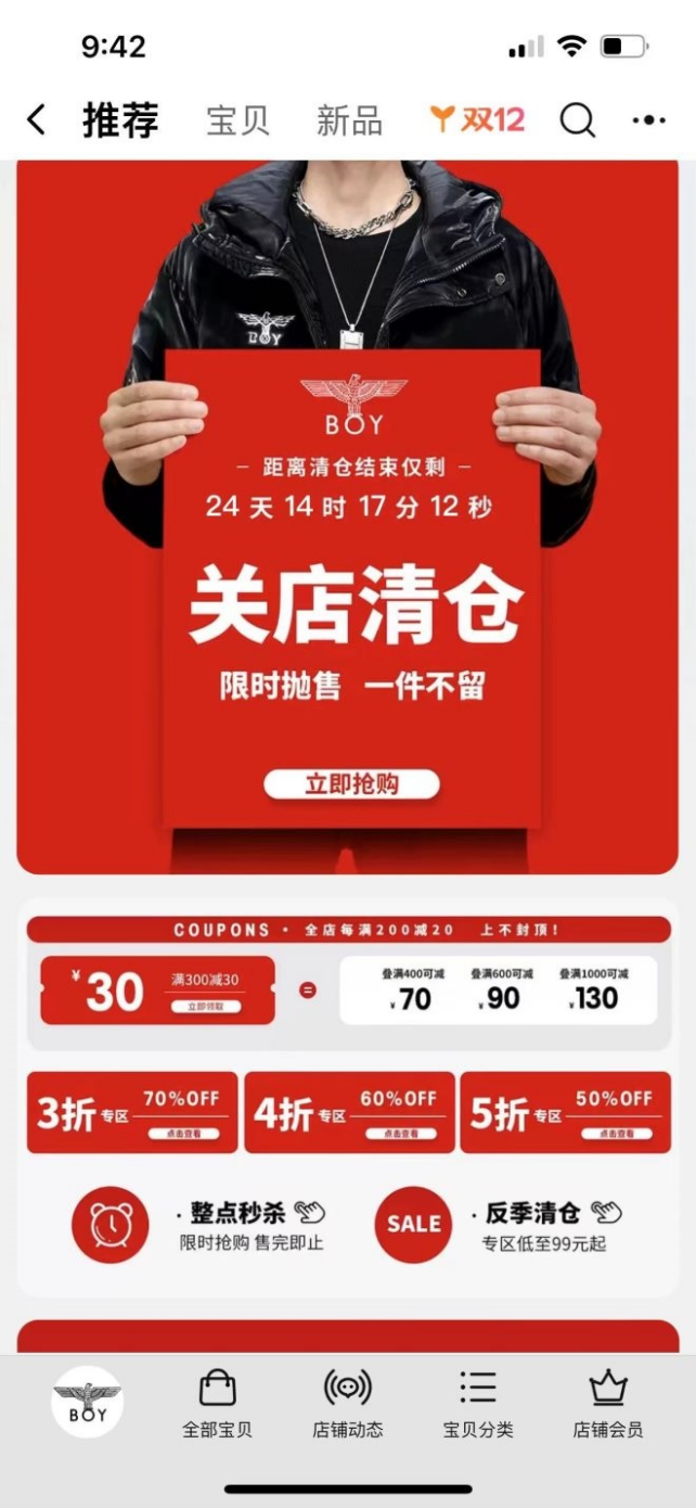 近日,BOY LONDON在天貓、京東的旗艦店均掛出了關(guān)店清倉(cāng)的海報(bào)。品牌天貓旗艦店即將于12月月底正式關(guān)店,京東旗艦店雖未標(biāo)明正式關(guān)店日期,但也醒目地標(biāo)注了“限時(shí)拋售,一件不留”。
