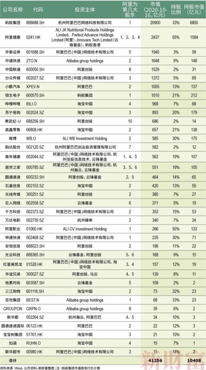 最全阿里投資概念股,總市值高達(dá)4.12萬(wàn)億
