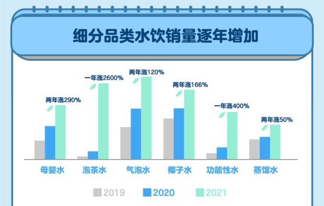 《報(bào)告》顯示,過(guò)去一年泡茶水在盒馬的銷(xiāo)量暴漲了26倍,其中上海人對(duì)泡茶用水最講究,消費(fèi)力為北京的5倍。京滬兩地的消費(fèi)者買(mǎi)走了全國(guó)近六成的嬰兒水,對(duì)寶寶的健康頗為重視。
